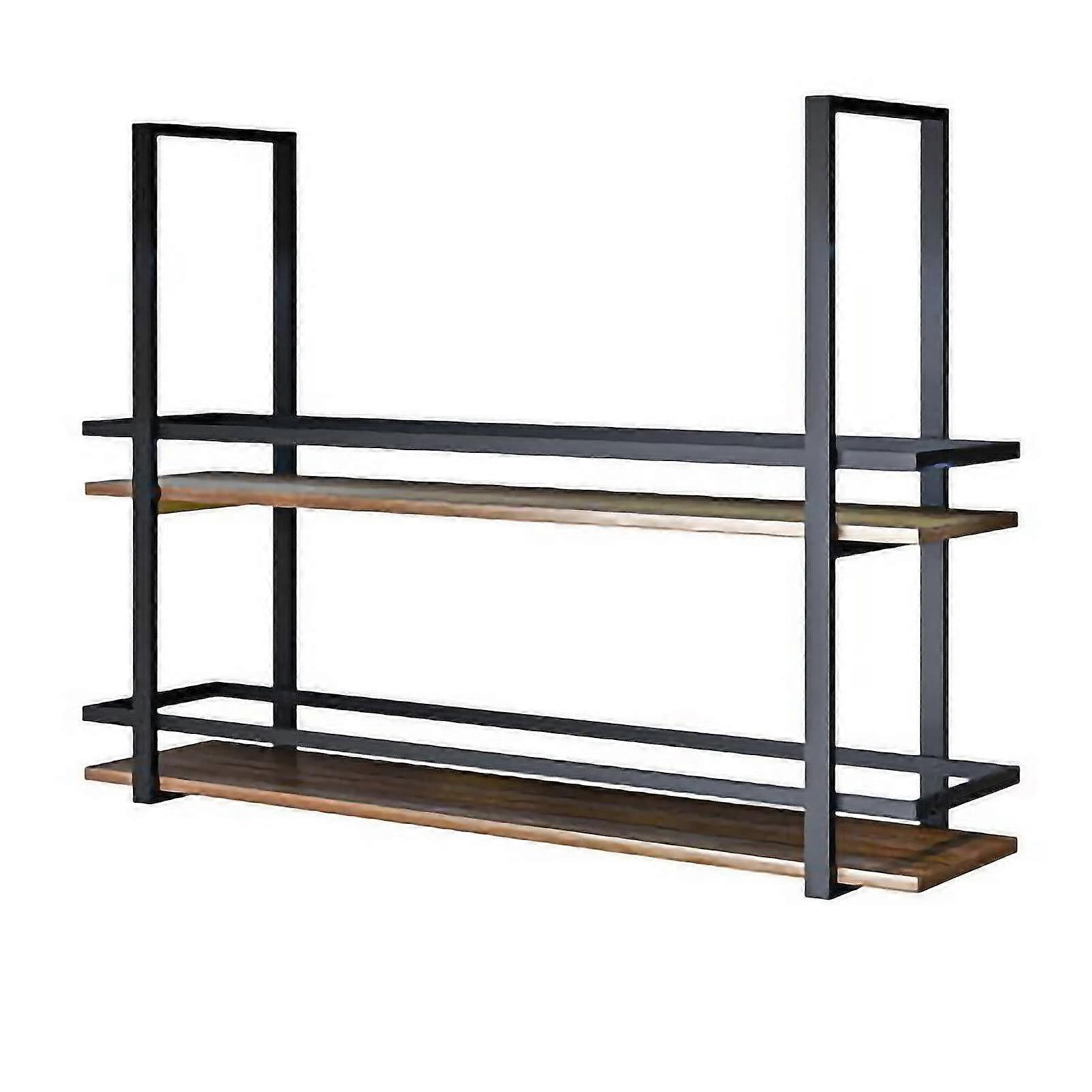 Ceiling Mounted Storage Rack, 2 Tier Industrial Metal and Wood Hanging Shelf for Kitchen or Bar
