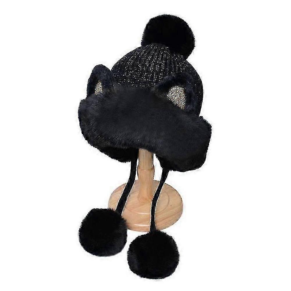 Warm Knitted Cat Ears Beanie for Winter Sports and Activities