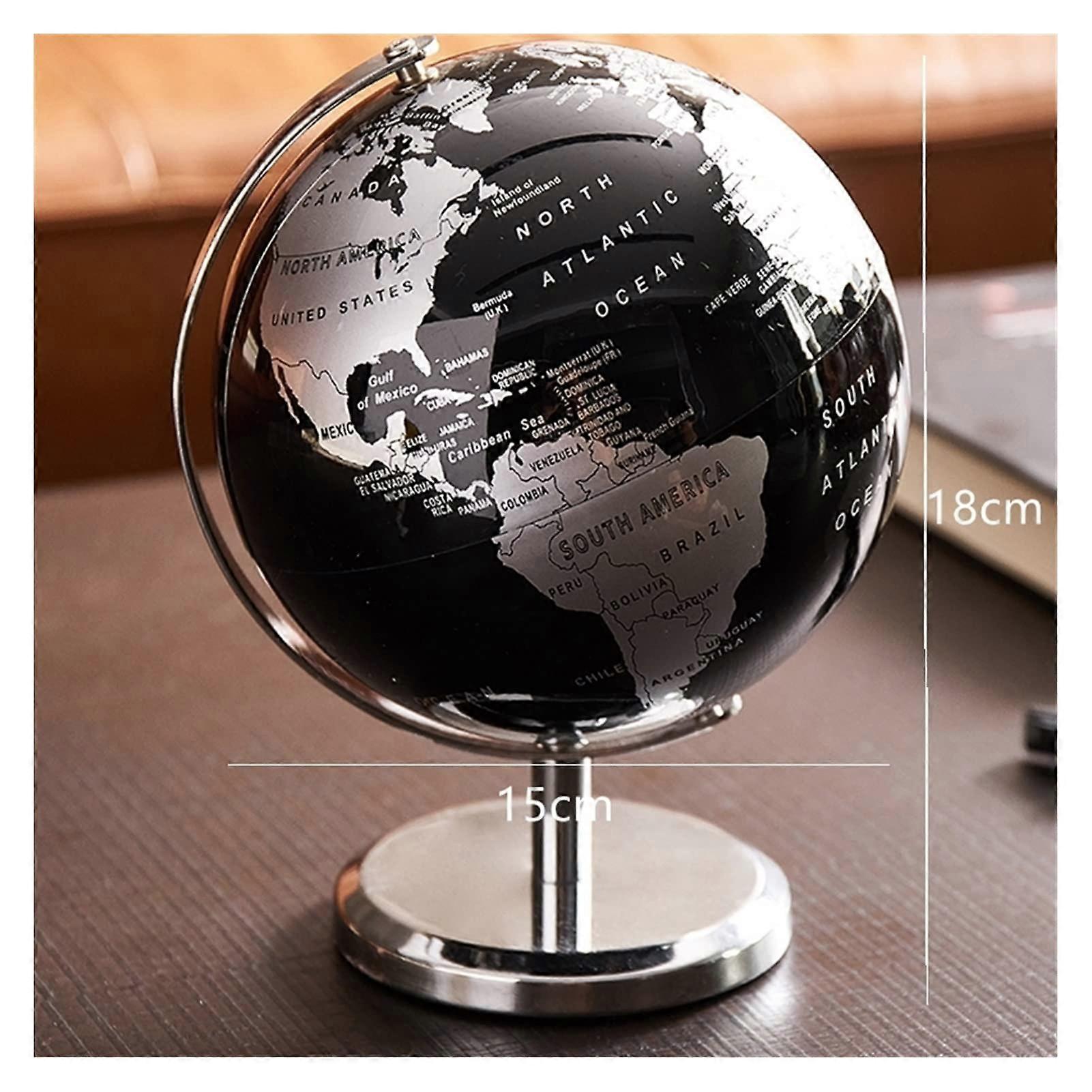 World Globe 5 Inch Black Vintage Desktop Globe with Clear Geographic Printing and Smooth Rotation