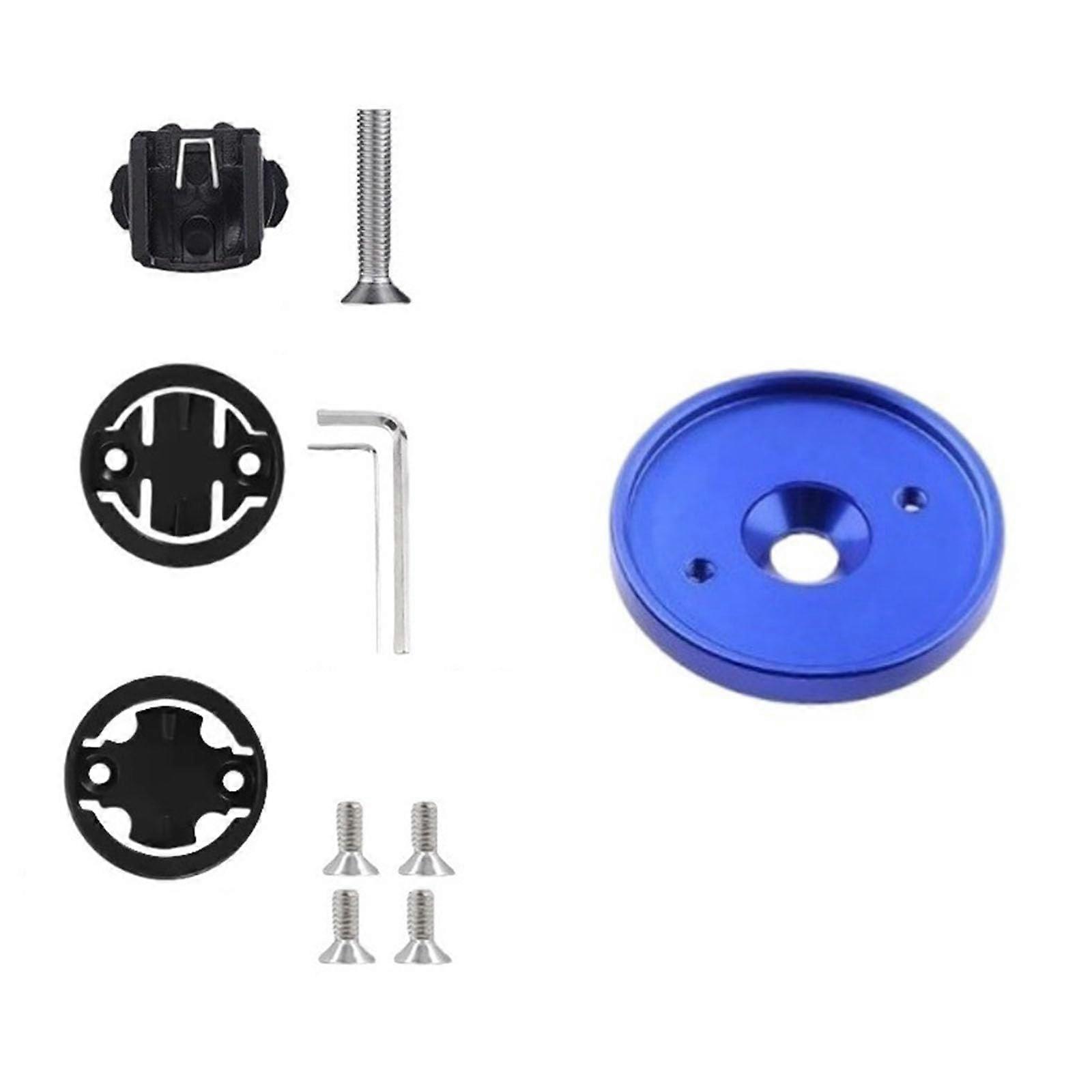 Blue Aluminum Alloy Bike Computer Mount, Universal Stem Cap Adapter for Road and Mountain Bikes