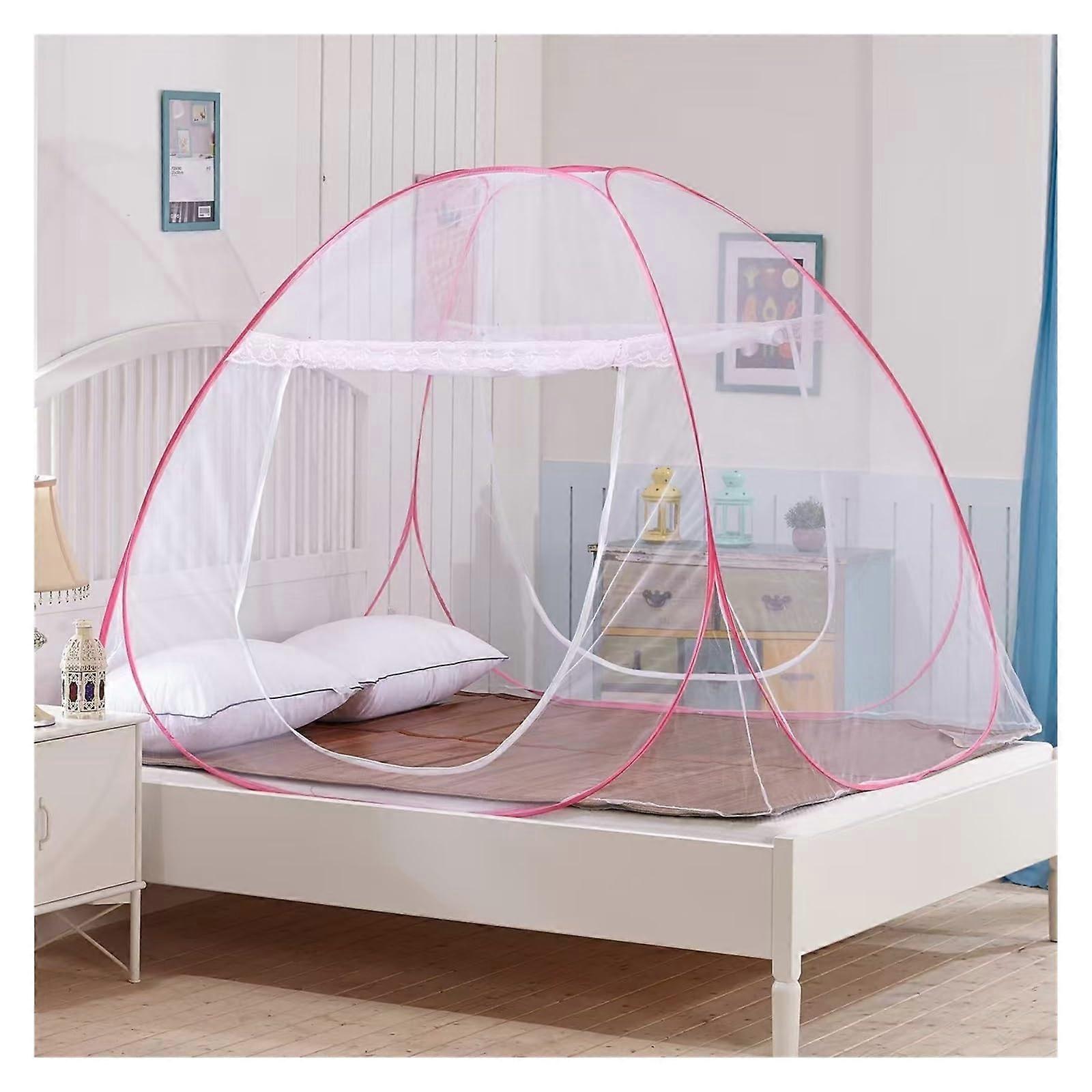 Pink Mosquito Net for Bed with Foldable Dome Canopy, Breathable Mesh, Camping and Bedroom Use 220x240x170cm