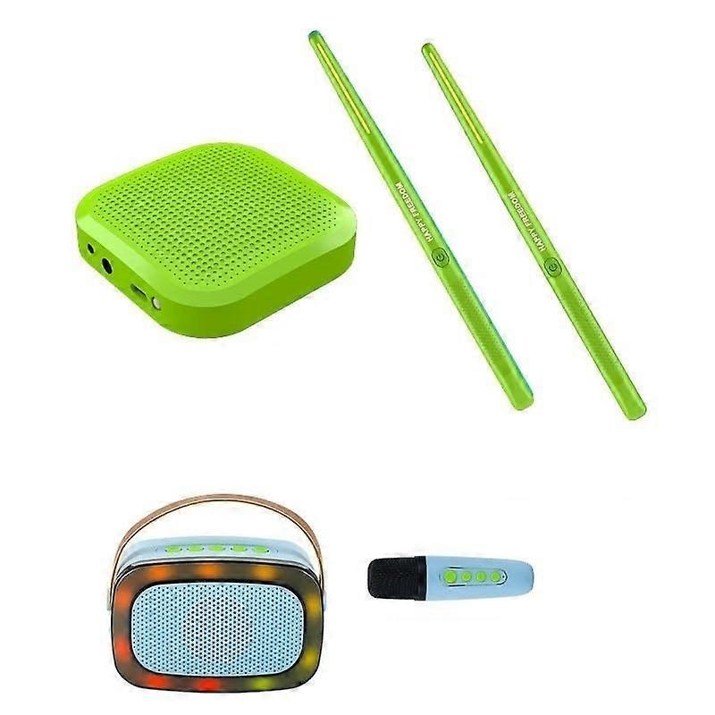 Virtual Drum Set with Bluetooth, RGB Light Air Drum Sticks, Wireless Kit for Adults and Kids Green