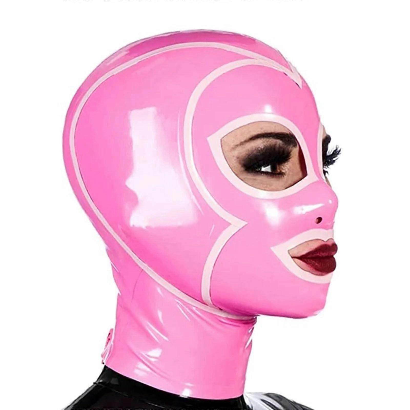 Latex Hood Mask Full Coverage with Back Zipper Breathable Waterproof Fetish Cosplay for Adults