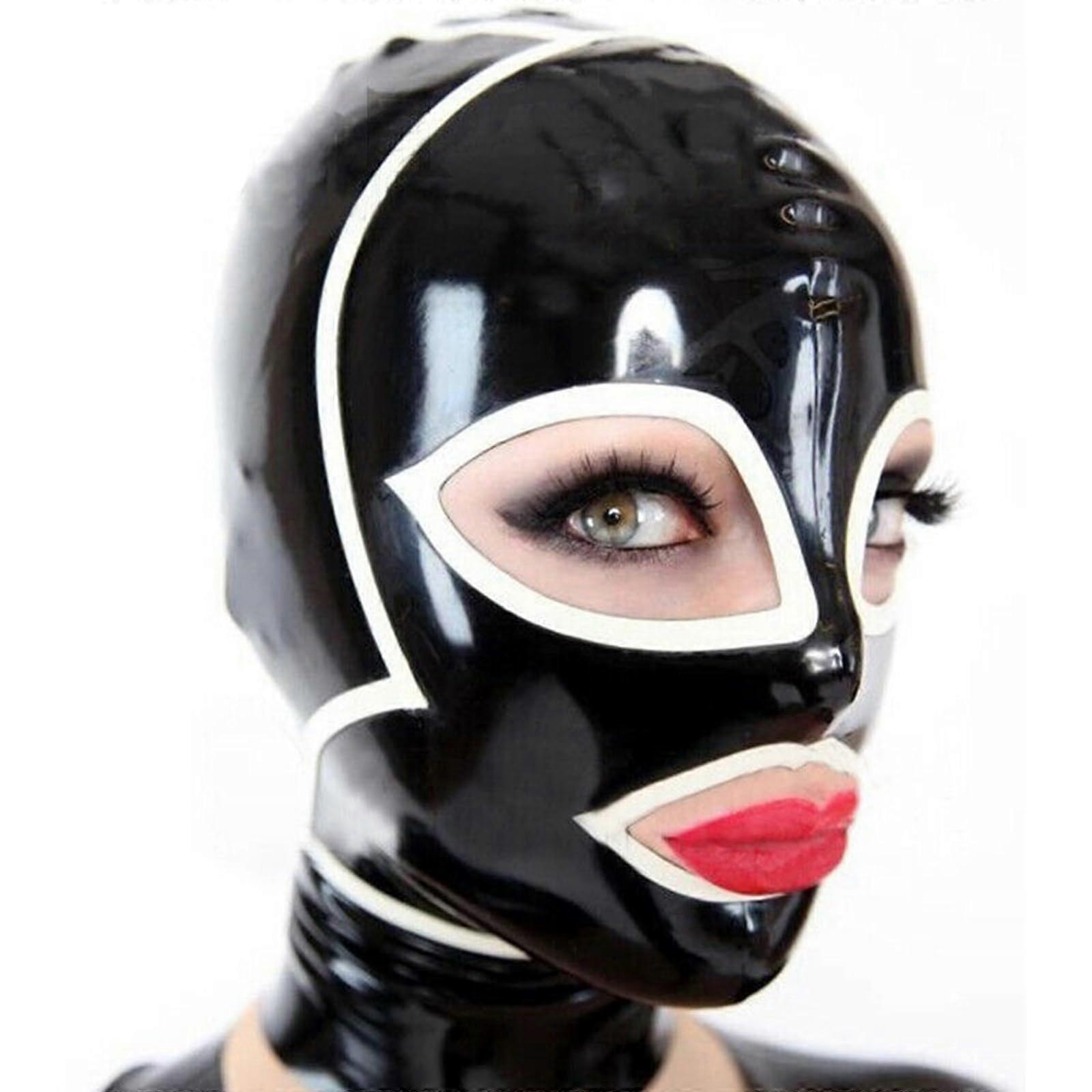 Latex Hood Mask with Back Zipper Sexy Full Head Cosplay Costume for Halloween Party XXL 73CM