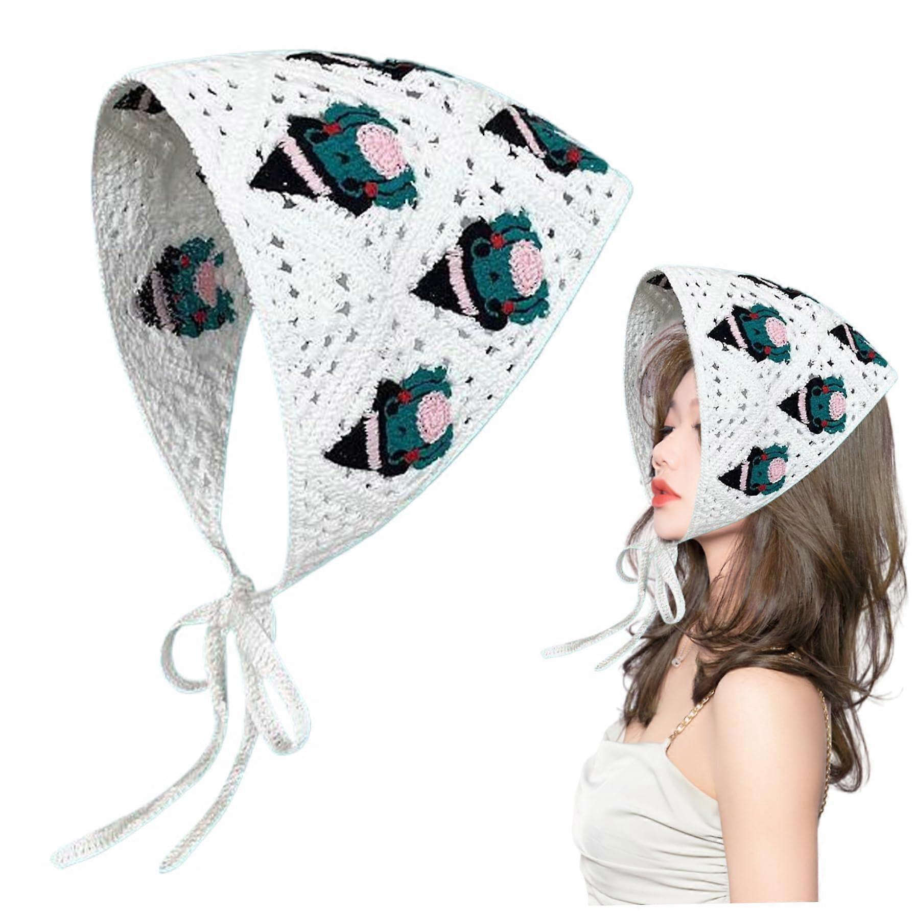 White Crochet Spiderweb Bandana Headband, Gothic Cotton Triangle Scarf with Adjustable Strap Fit