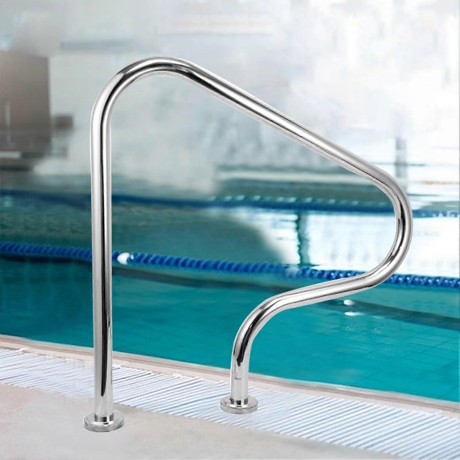 Stainless steel pool handrail designed for lasting performance and comfortable use. Key benefits Durable 304 stainless steel construction with a polished finish resists rust and wear for long service life. Widened base and solid connection to the curved pipe provide reliable load capacity and stable support. Ergonomic curved grip follows the natural shape of the hand for comfortable holding and better control when entering or exiting the pool. Straightforward installation with all hardware included. Mounts to concrete, wood, or brick surfaces using the supplied screws and bottom plate. Features Material: 304 stainless steel with polished surface. Mounting: widened base plate with predrilled holes for screw installation. Compatibility: suitable for domestic and commercial pools when anchored into concrete, wood, or brick floors. Finish: smooth, flowing lines for an attractive appearance that complements pool environments. Practical advantages Reduces effort and improves confidence when getting in and out of the water by offering a firm handhold. Low maintenance surface is easy to clean and holds up well outdoors. Attractive design enhances poolside aesthetics while remaining functional. Use scenarios Residential backyard pool where family members need a steady handhold for entry and exit. Hotel or community pool requiring durable, low maintenance handrails for frequent use. Rehabilitation pool or spa area where users benefit from a comfortable, easy to grip rail. What is included Pool handrail with widened base plate and curved tube. Mounting screws and hardware for fast installation on concrete, wood, or brick floors. Installation notes Select a solid mounting surface and appropriate fasteners for the substrate. Secure the bottom plate to the floor using the provided screws, then attach the rail for a tight fit.