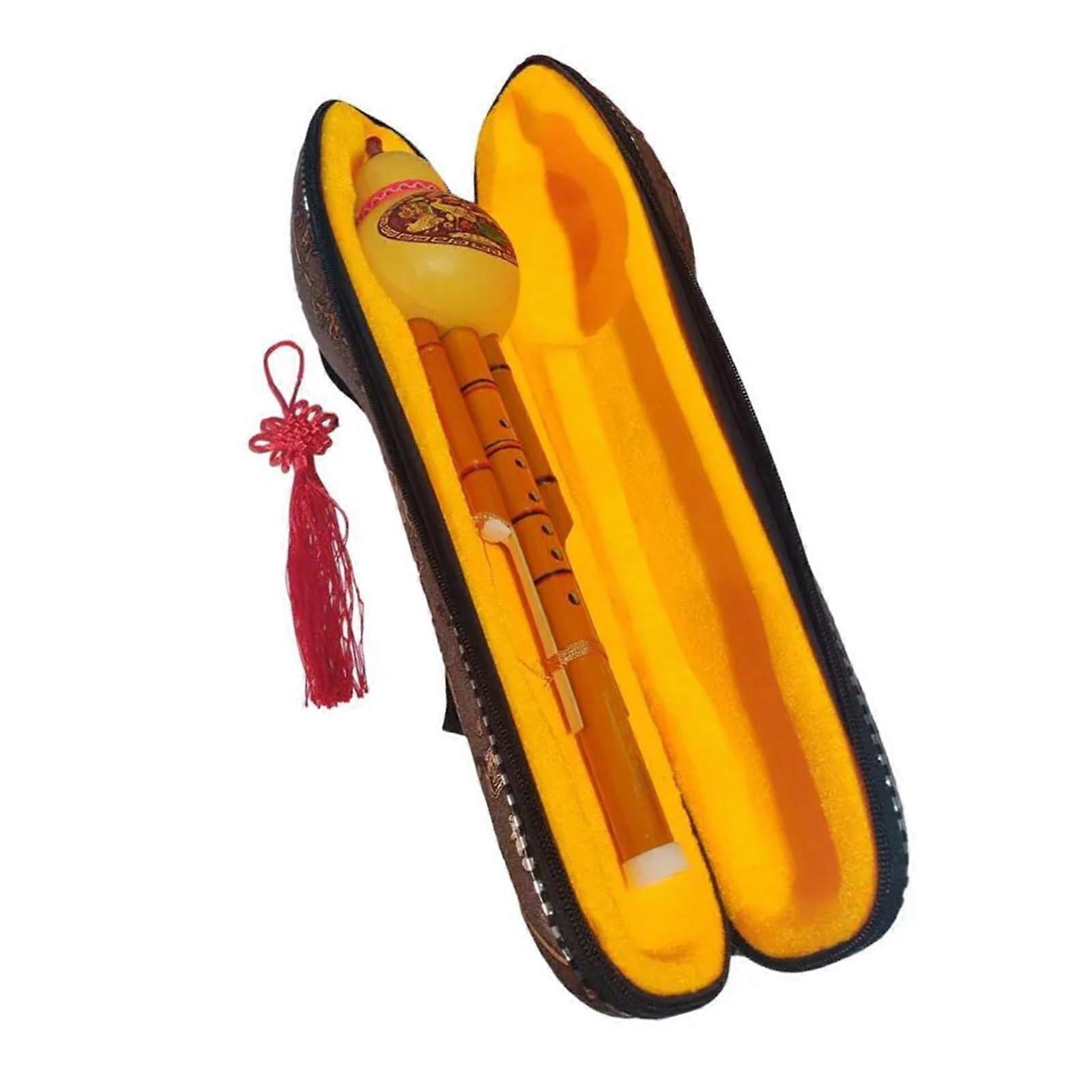 Chinese Hulusi Flute with Case, Handmade Cucurbit Bamboo, Accurate Tuning for Beginners and Pros