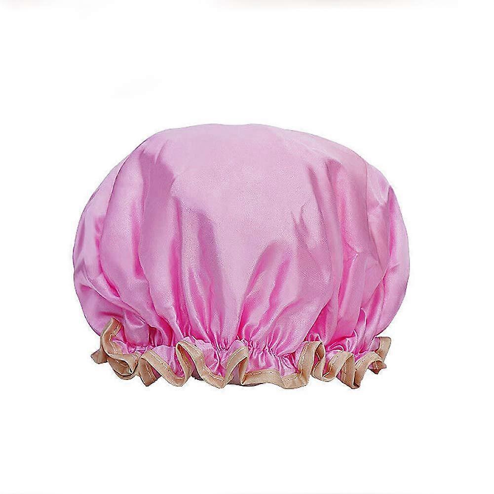 Pink Double Layer Waterproof Shower Cap for Long Hair with Elastic Hem, Oversized Fit
