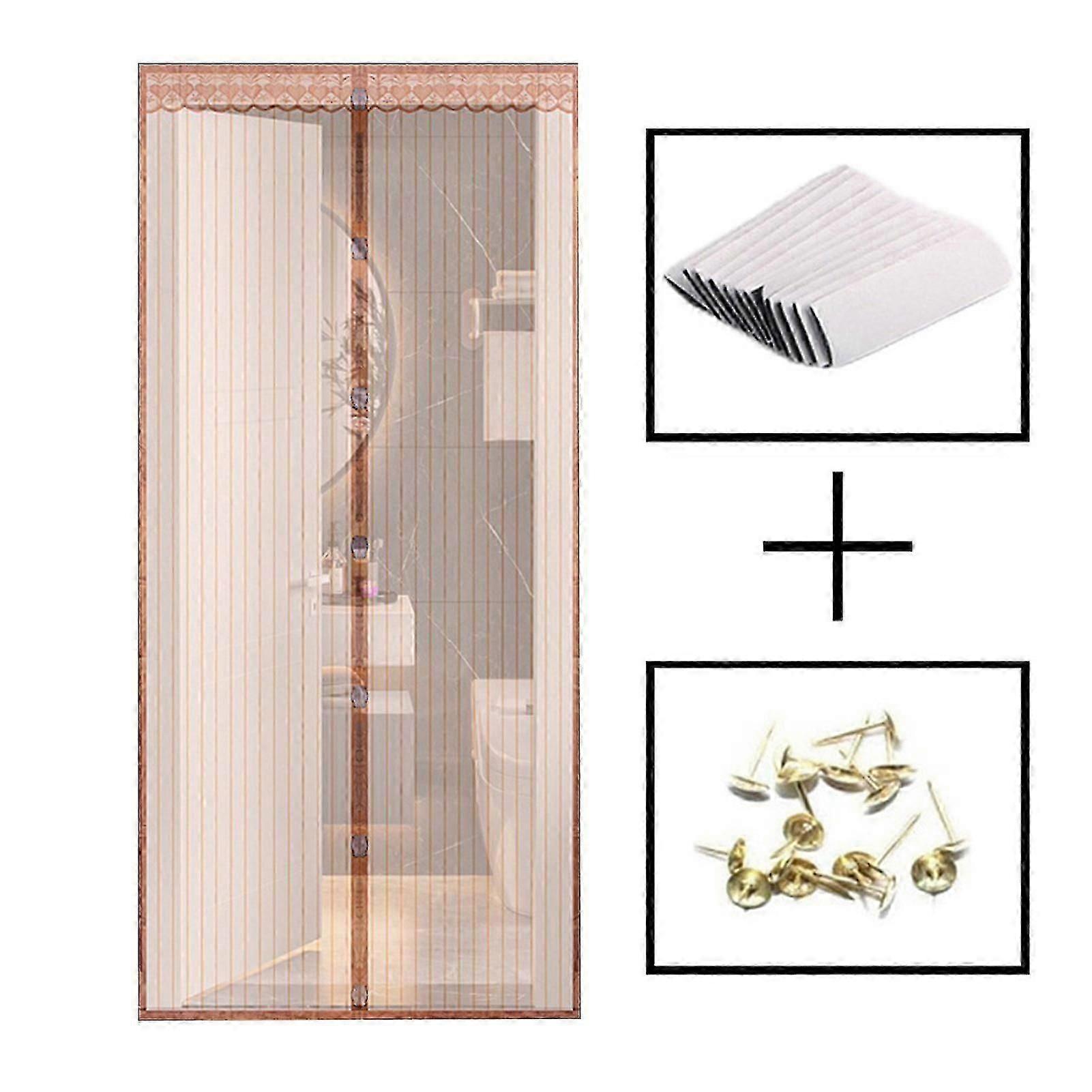 (120X250cm-Brown)Instants Magnetic Screen Door Net Reinforced Magnetic Screen Door Net for Bedroom