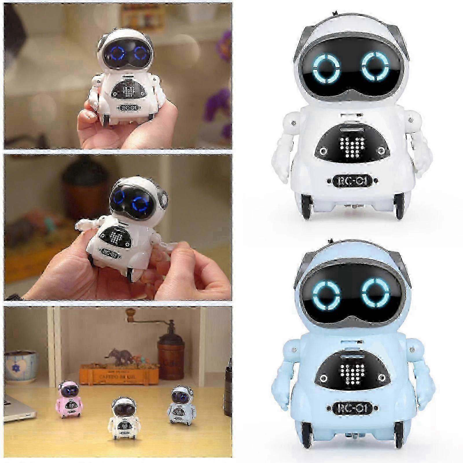 Smart Pocket Mini RC Robot Talking Dancing Story Interactive Kids Toy Xmas Gift Features1. The Eye of Interactive Fun Expression: When receiving various commands, this robot's eyes will flash with a happy light, adding charming and emotional elements to your interaction.2. Multifunctional: Use this multifunctional robot to enjoy interactive communication, singing, dancing, LED lighting effects, storytelling, and decorative appeal.3. Intelligent dialogue mode: Just talk to the robot, it can recognize your voice and respond, providing you with a loyal and charming partner when you feel lonely.4. Endless entertainment: From sliding and singing to dancing, this robot offers a wide range of activities that can bring hours of fun and entertainment.5. Compact and portable design: This small robot has a convenient hole on its head or can be placed in a pocket, allowing you to easily take it anywhere.SpecificationLanguage: English versionColor: White, Blue, PinkProduct Material: ABSElectronic ComponentsProduct size: 6.5 x 5 x 8.5CMBattery usage: 1 AAA battery (not included)Product Features: Speech Recognition/Voice Dialogue/Tongue Changing/Singing and Dancing/LightingIndividual weight: approximately 110 grams (including packaging)Package Include:1x Mini Toy Robot