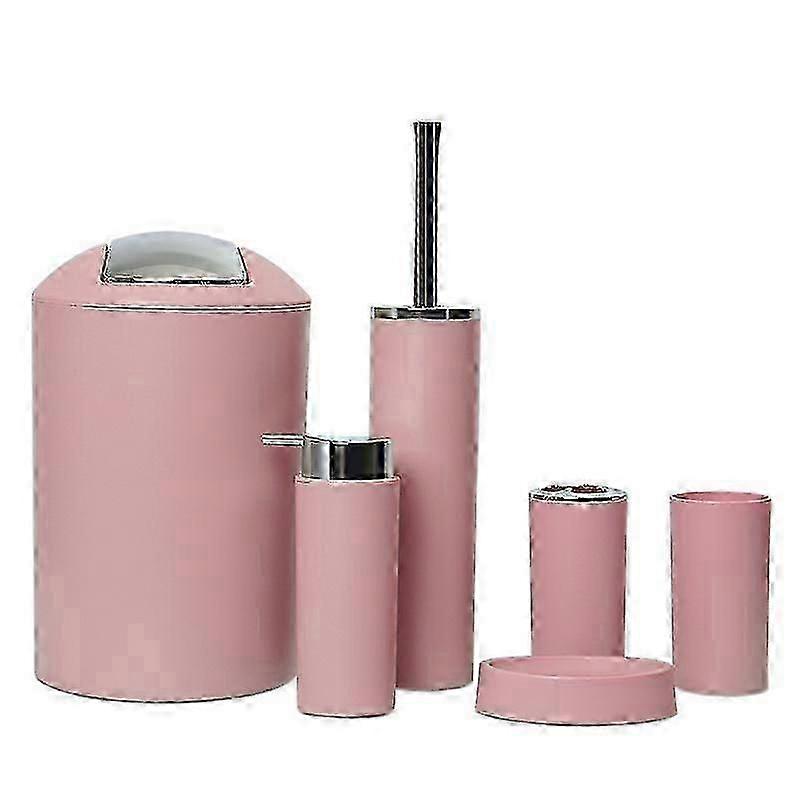 (Pale Pink)6PCS Bathroom Accessories Set Toothbrush Holder Cup Soap Dispenser Dish Toilet Brush Trash Can Plastic Tumbler Cup Washroom Tool
