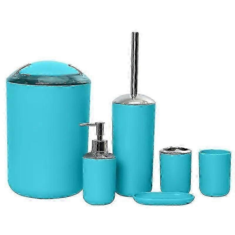 (Dark Blue)6PCS Bathroom Accessories Set Toothbrush Holder Cup Soap Dispenser Dish Toilet Brush Trash Can Plastic Tumbler Cup Washroom Tool