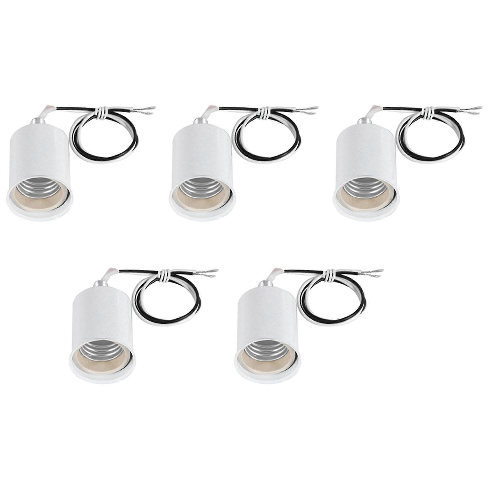 5X E27 Ceramic Screw Base Round LED Light Bulb Lamp Socket Holder Adapter Metal Lamp Holder with Wire White