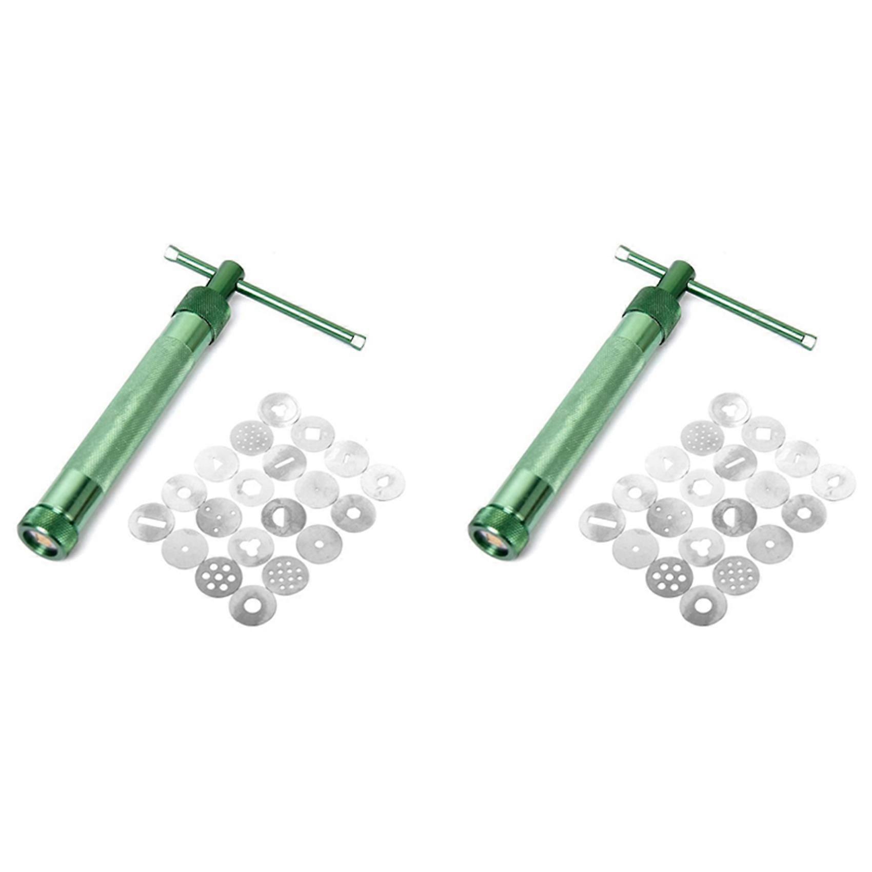 [Multifunctional]The clay tool is multifunctional. You can not only use a manual extruder on the clay, but also use it to make cakes, bread dough, and syrup. It is also very suitable for clay, paint, foam crafts, wooden models, and art projects. [Multiple styles] 2 clay extruder with 40 different disc accessories to meet different creative needs [Excellent material] The spray gun parts of the clay extruder are made of stainless steel, which is strong and durable, not easy to damage, and has good local and small rapid prototyping effects. [Humanity Design]Humanized design, non-slip, easier to squeeze. Our products can be broken down into three parts, easy to clean [Unique Gift]This set of tools is an Perfect helper for artists, bakers and craftsmen. As a nice holiday and birthday gift for them is a very good choice. size:15.8cm Material:Aluminum alloy colour:green Package Contents: 2 x clay extruder 40 x disc accessories Only the above package content, other products are not included. Note: Light reflection and different displays may cause the color of the item in the picture a little different from the real thing. The measurement allowed error is +/- 1-3cm.