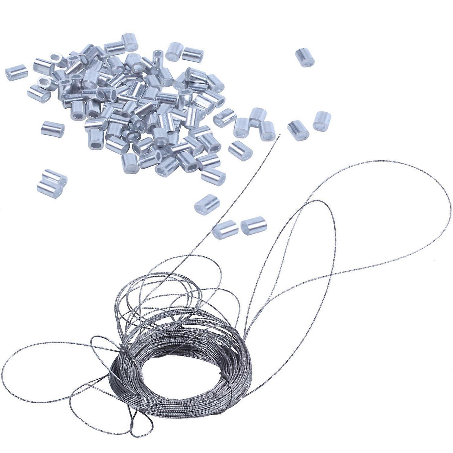 100 Pcs 1mm Steel Wire Rope Aluminum Ferrules Sleeves Silver Tone & 1x STAINLESS Steel Wire Rope Cable Rigging Extra, Length:15M Diameter:1.0mm