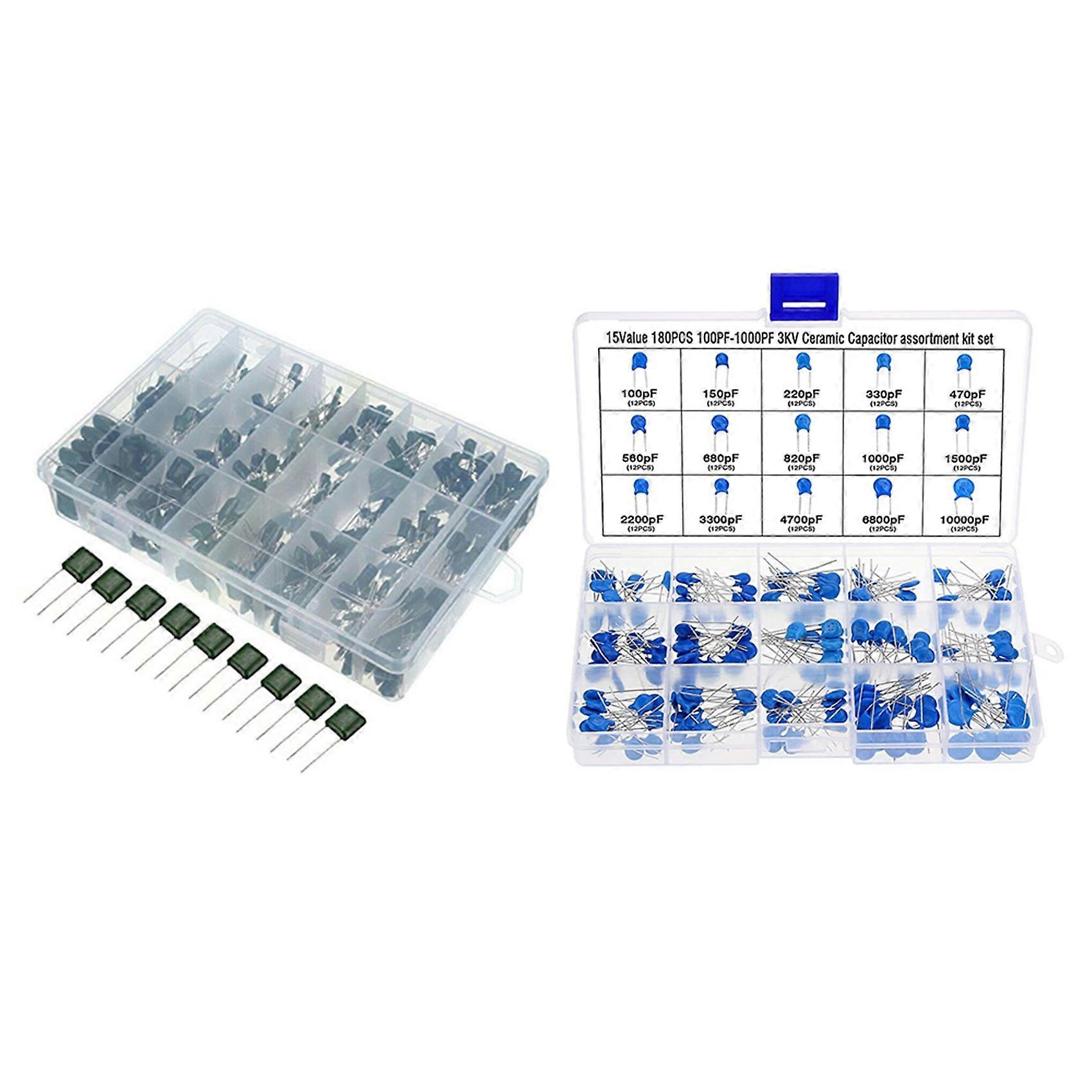 660Pcs 24Values 100V 2A221-2A474 Polyester Film Capacitor Kit with 180Pcs 15Values Dip Ceramic Capacitor Assortment Kit