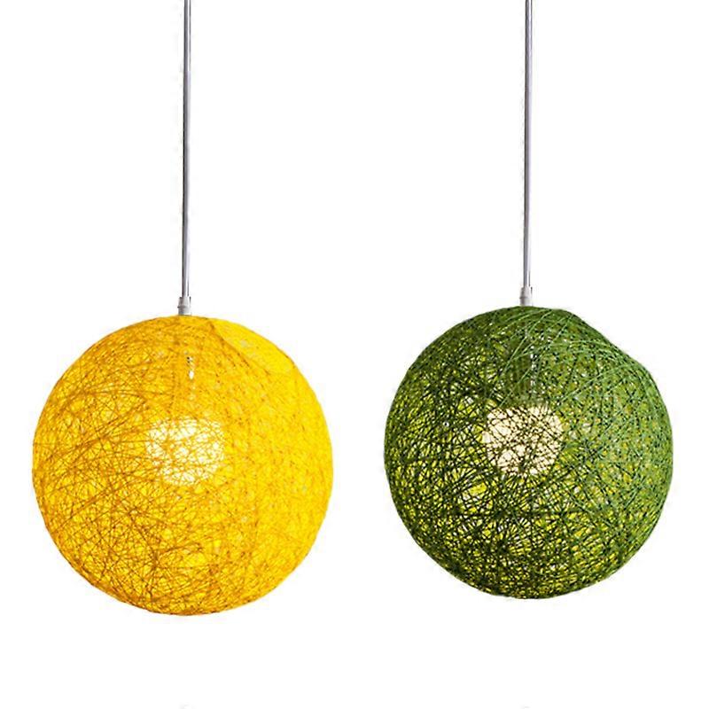 2 Pcs Rattan and Hemp Ball Chandelier Individual Creativity Spherical Rattan Nest Lampshade,Green Bamboo & Yellow Bamboo