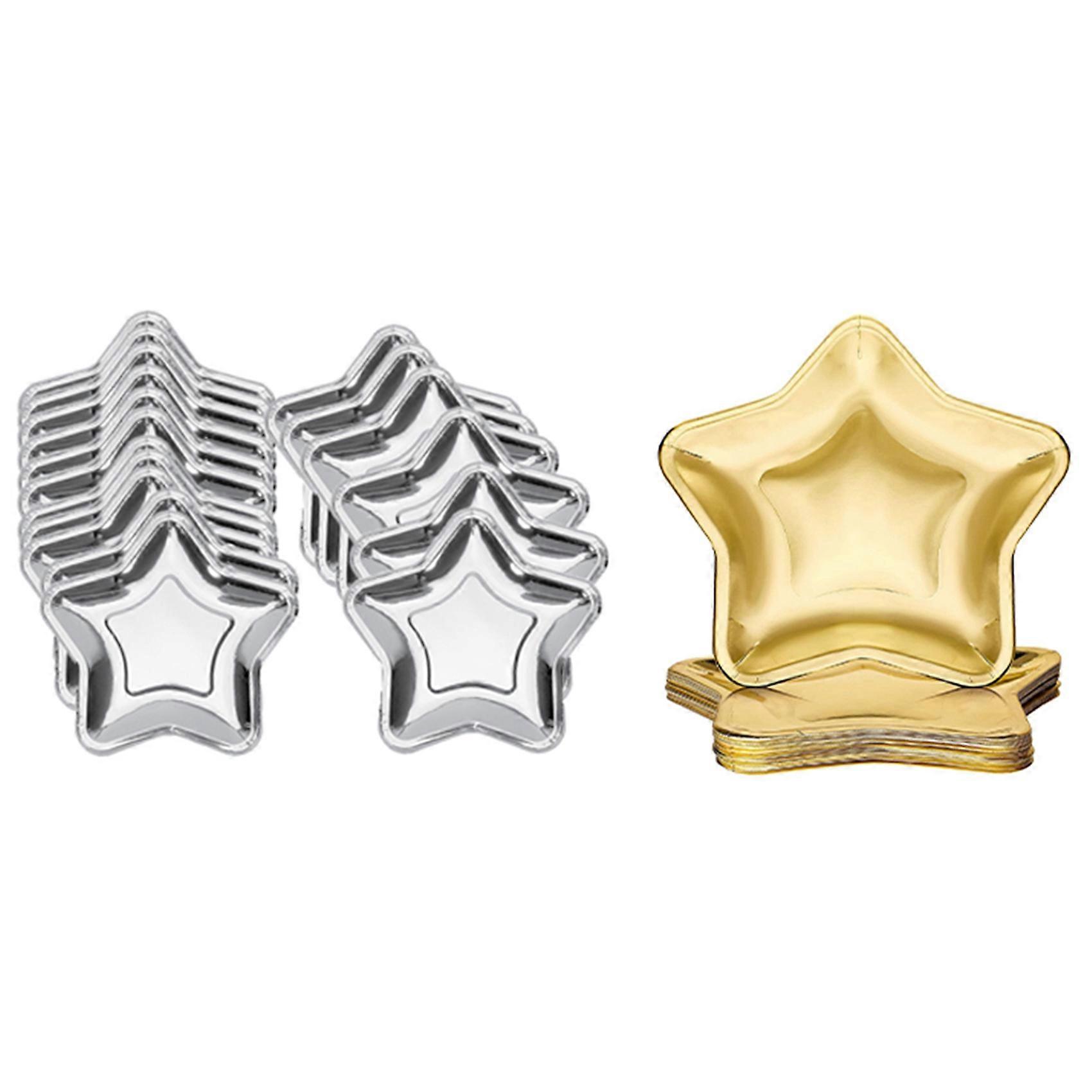 60Pcs Star Shaped Paper Plates Gold Disposable Party Plate Pentagram Dinnerware Plate, Silver & Gold