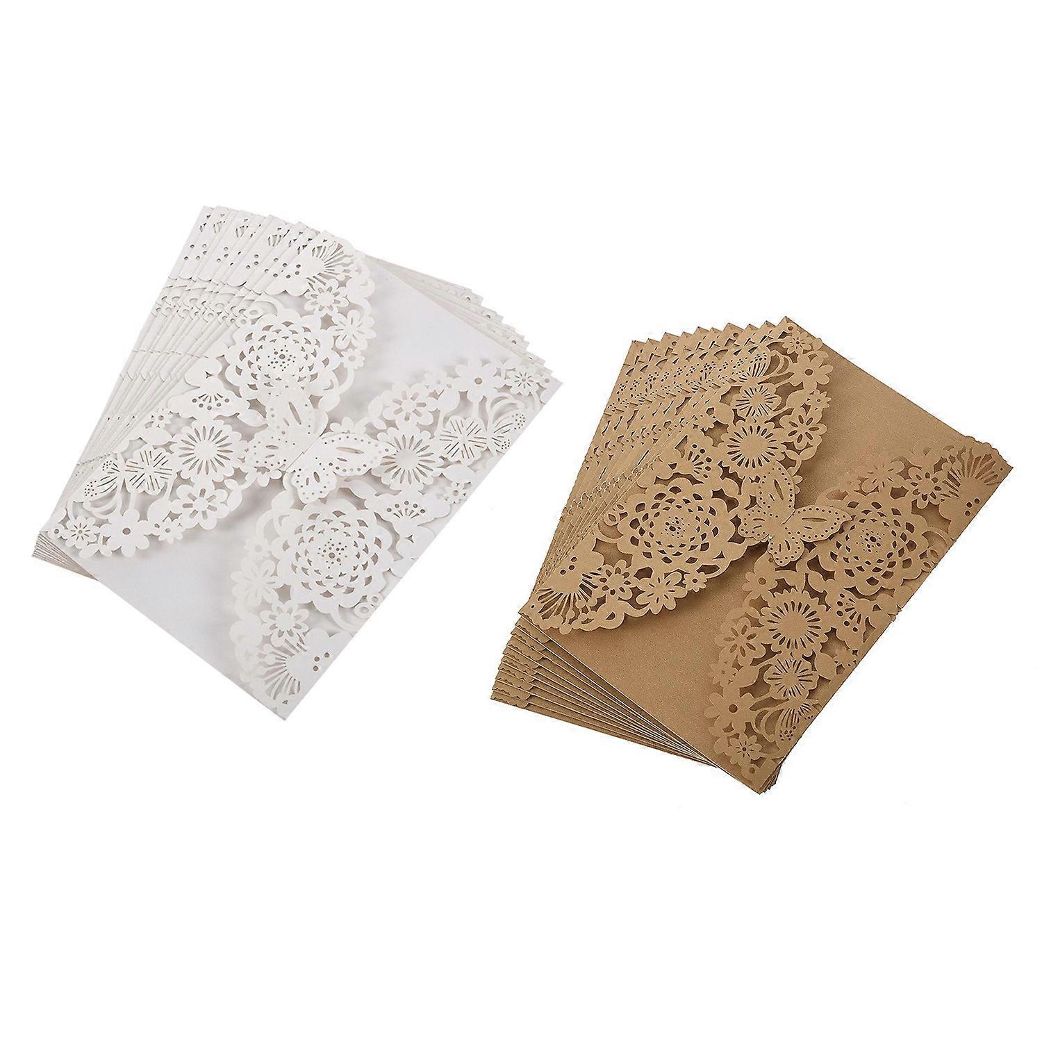 20Pcs Delicate Carved Butterflies Romantic Wedding Party Invitation Card Envelope Invitations for Wedding, 10Pcs White & 10Pcs Golden Beige