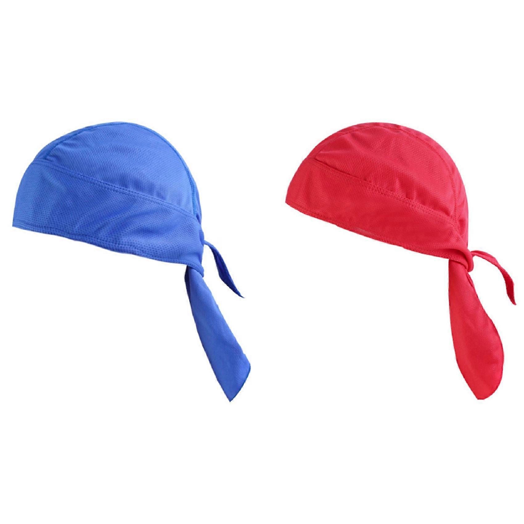 2PCS Quick Dry Head Scarf Pure Cycling Cap Summer Men Running Riding Bandana Headscarf Pirate Hat, Blue & Red