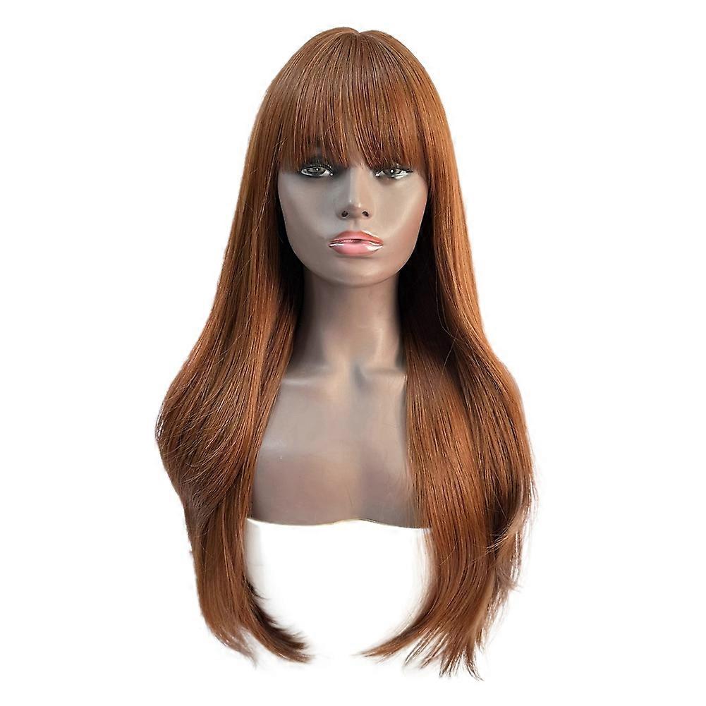 WIND FLYING 24 Inches Reddish Brown Synthetic Wig Long Water Wave Wig Cosplay Wig with Bangs for Women Girls Heat Resistant Wigs