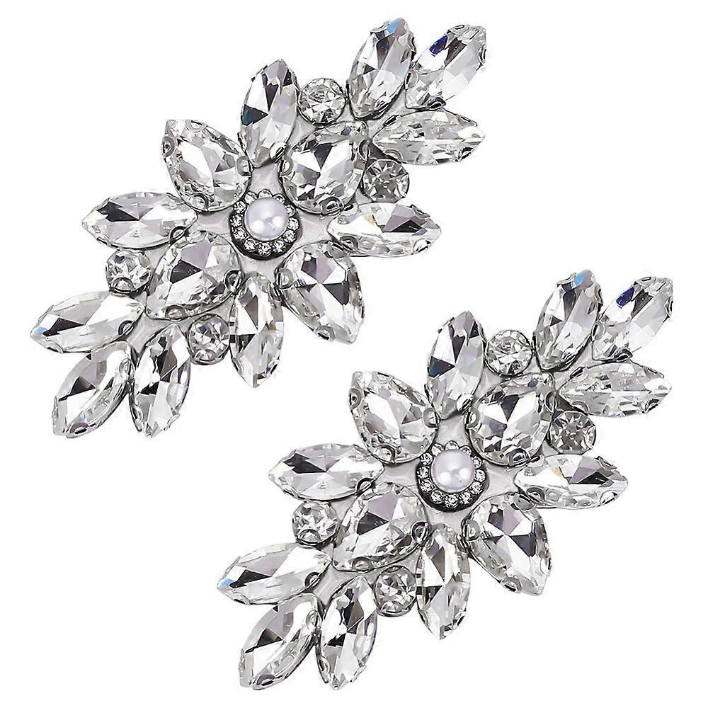 Rhinestone Flower DIY Sewing Ornament Accessories 77x37.5x8mm 2pcs/set.