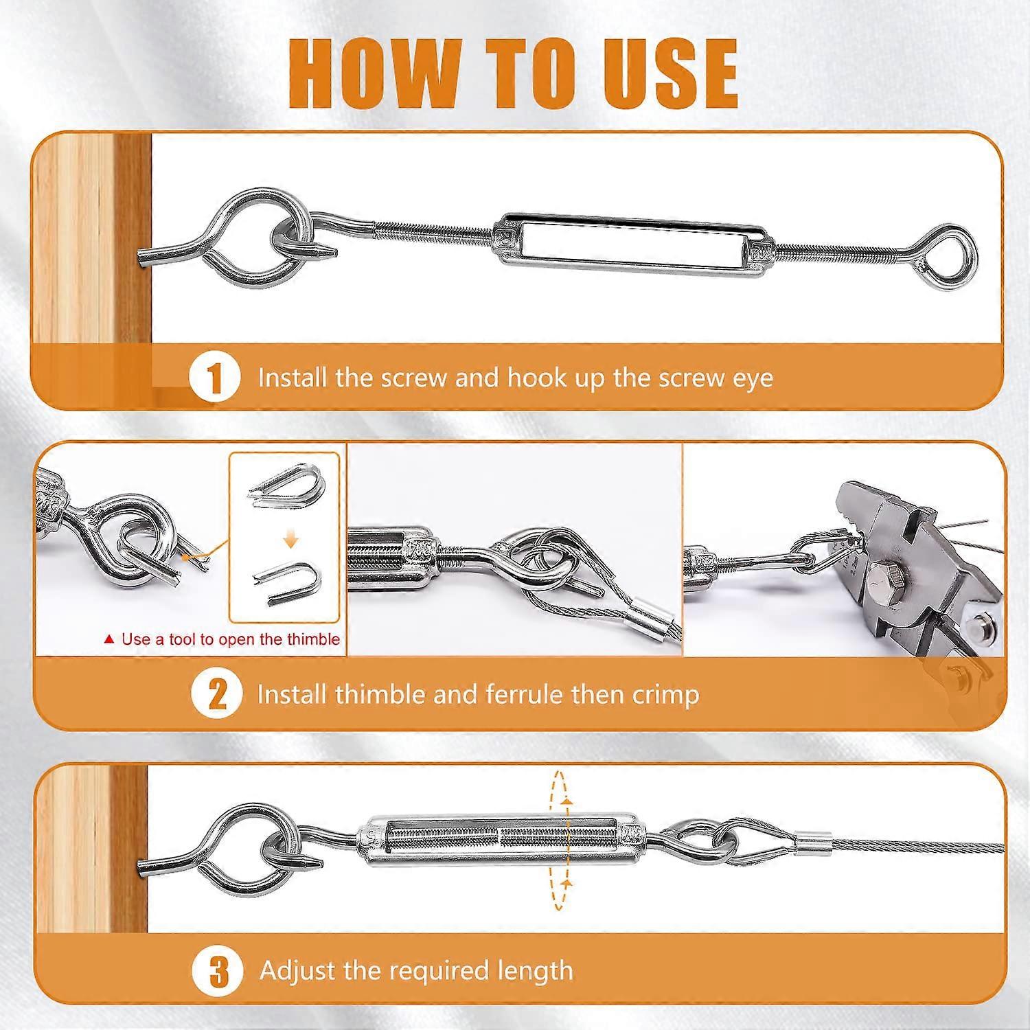 1/16Inch Turnbuckle Wire Tensioner Kit Heavy Turnbuckle Cable Railing Kit 65Ft Wire Rope,M5 Hook and Eye Turnbuckle Kit