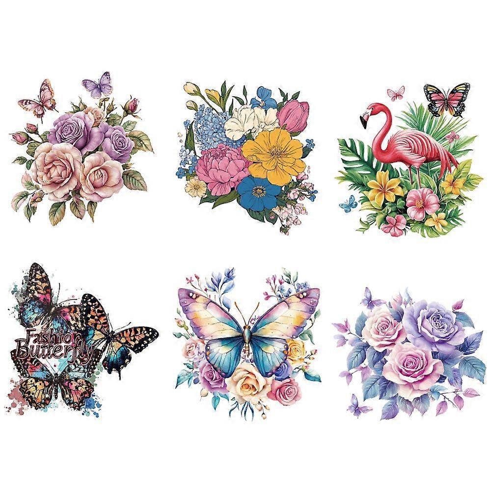 6pcs 6 styles Plastic Heat Transfer Film Logo Stickers set for DIY T-Shirt Bags Hats Jackets Flower 200~230x211~230mm 1pc/style