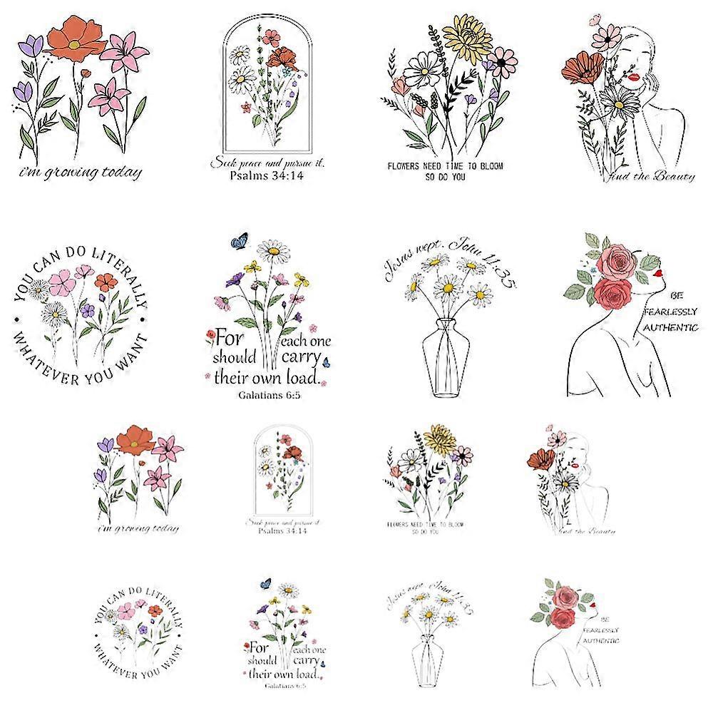 16pcs Plastic Heat Transfer Film Logo Stickers set for DIY T-Shirt Flower 65~180x80~220mm
