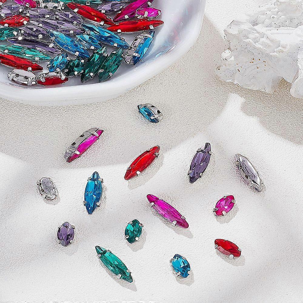 60pcs 10 styles Sew on Rhinestone Multi-strand Links Glass Rhinestone with Platinum Tone Brass Prong Settings Garments Accessories Faceted Horse Eye M