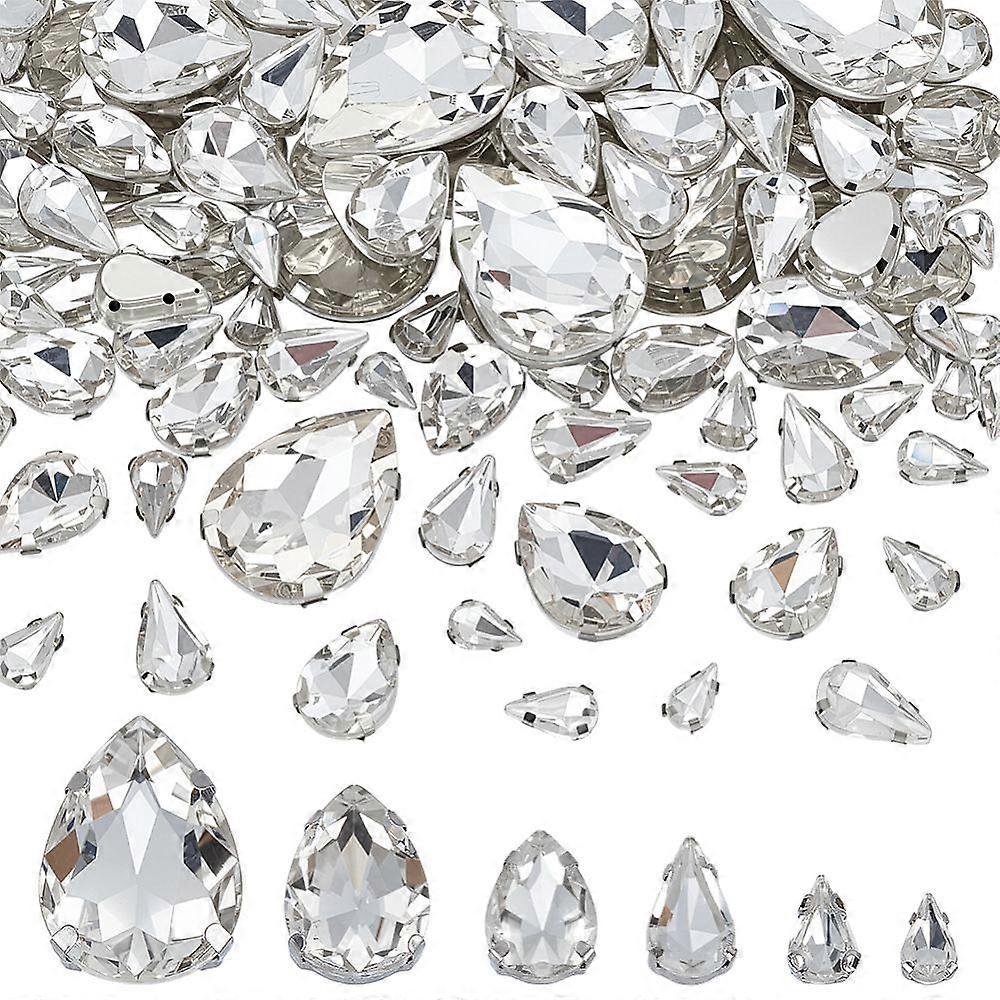120pcs Sew on Rhinestone Multi-strand Links Glass Rhinestone with Platinum Tone Brass Prong Settings Teardrop 8~25x5.5~18x4~8mm Hole: 0.8~1mm