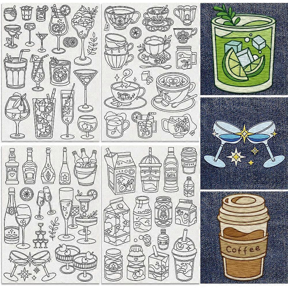 4 Sheets 11.6x8.2 Inch Stick and Stitch Embroidery Patterns Non-woven Fabrics Water Soluble Embroidery Stabilizers Drink 297x210mmm