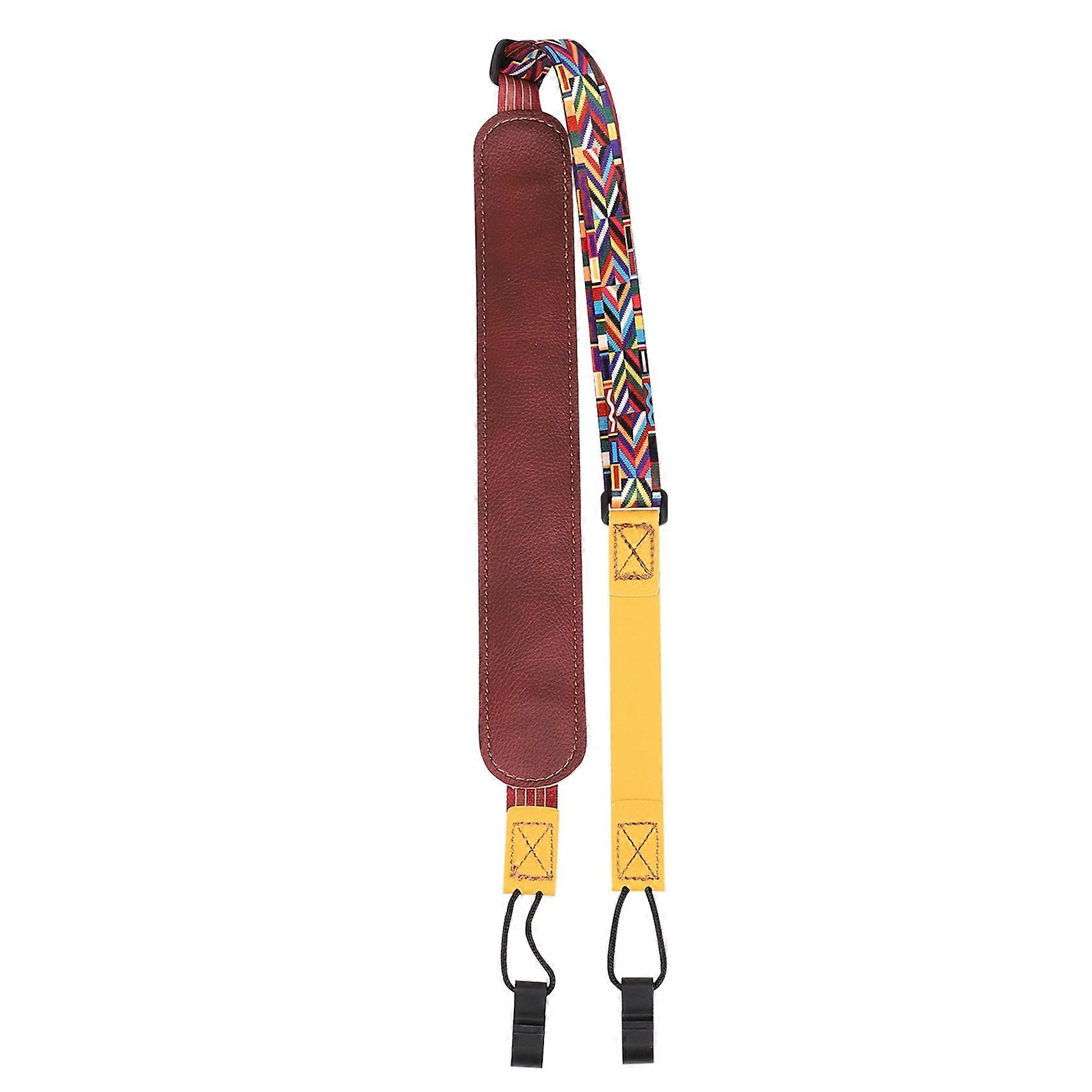 Longteam Ukulele Free Punching Strap Slanting Tailless Nail Ukulele Strap Shoulder Strap Piano (Yellow Ethnic Style)