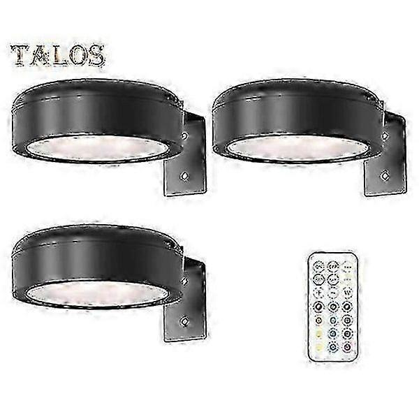 Wall lamp with remote control, 100 lumens high brightness, stepless dimming, 3 lighting modes, battery powered, no drilling required, black, 3-pack