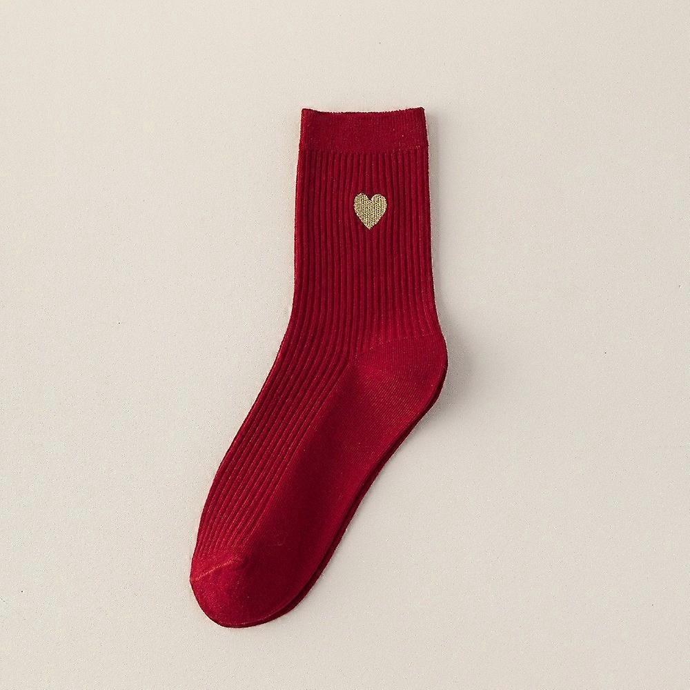 Fashion Cartoon Embroidery Cotton Socks Red Casual Mid Tube Socks Sweat Absorption Anti-slip Socking Autumn Winter