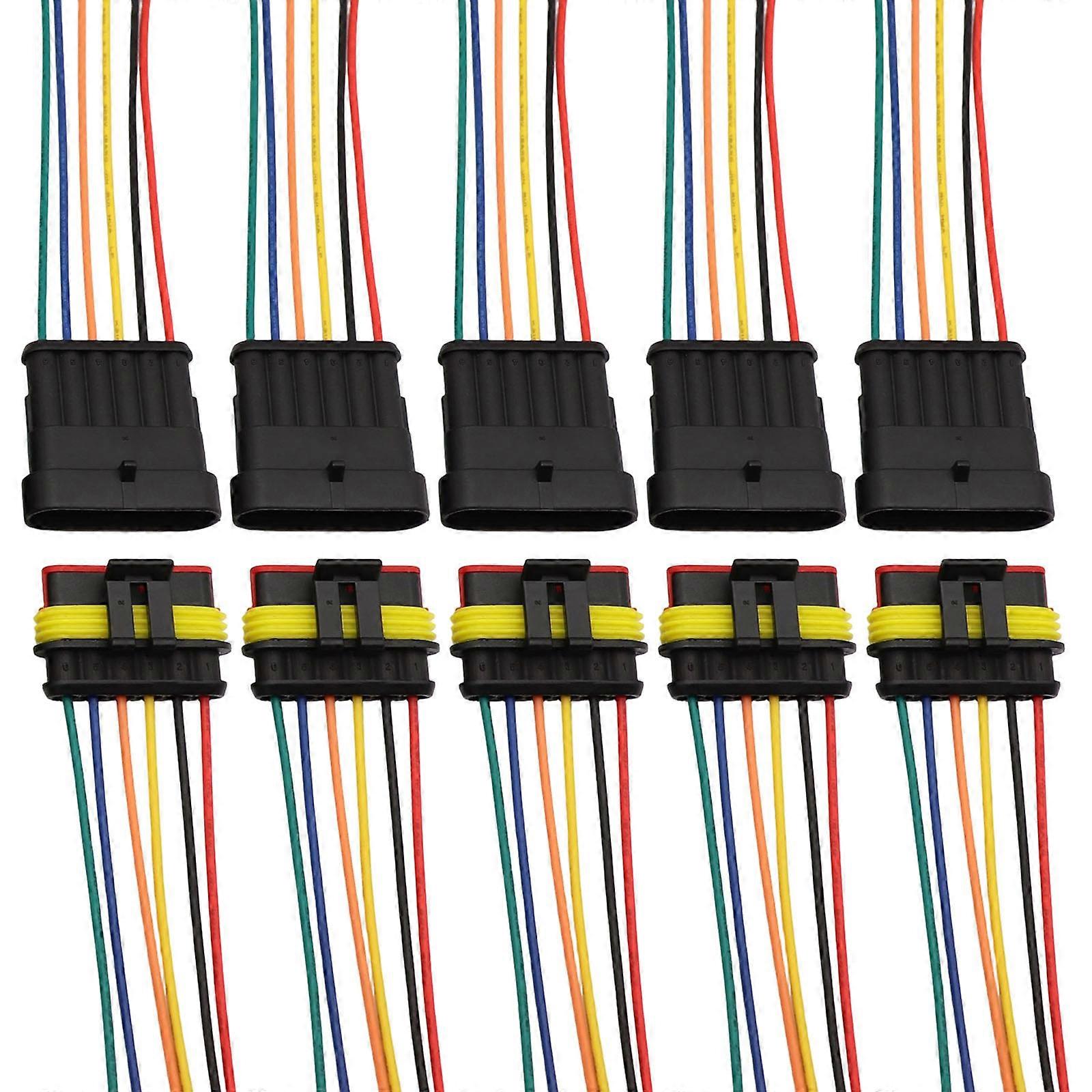 5Pcs Car Waterproof Connector Male Female Electrical Connector Plugs with Wire Quick Connect Replacement Accessories Multicolor