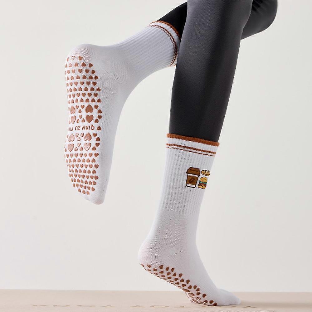 New Cotton Pilates Socks Breathable Sweat-absorbent Yoga Socks Non-Slip Grip Harajuku Street Cherry Embroidery Socks