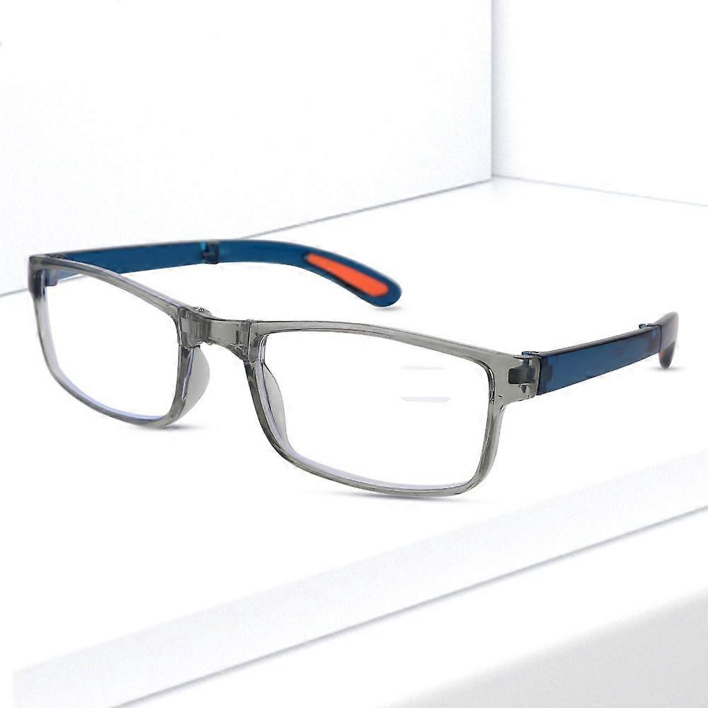New PC Reading Glasses Blue+Grey Square Frame Business Eyeglasses Vision Care Men Women