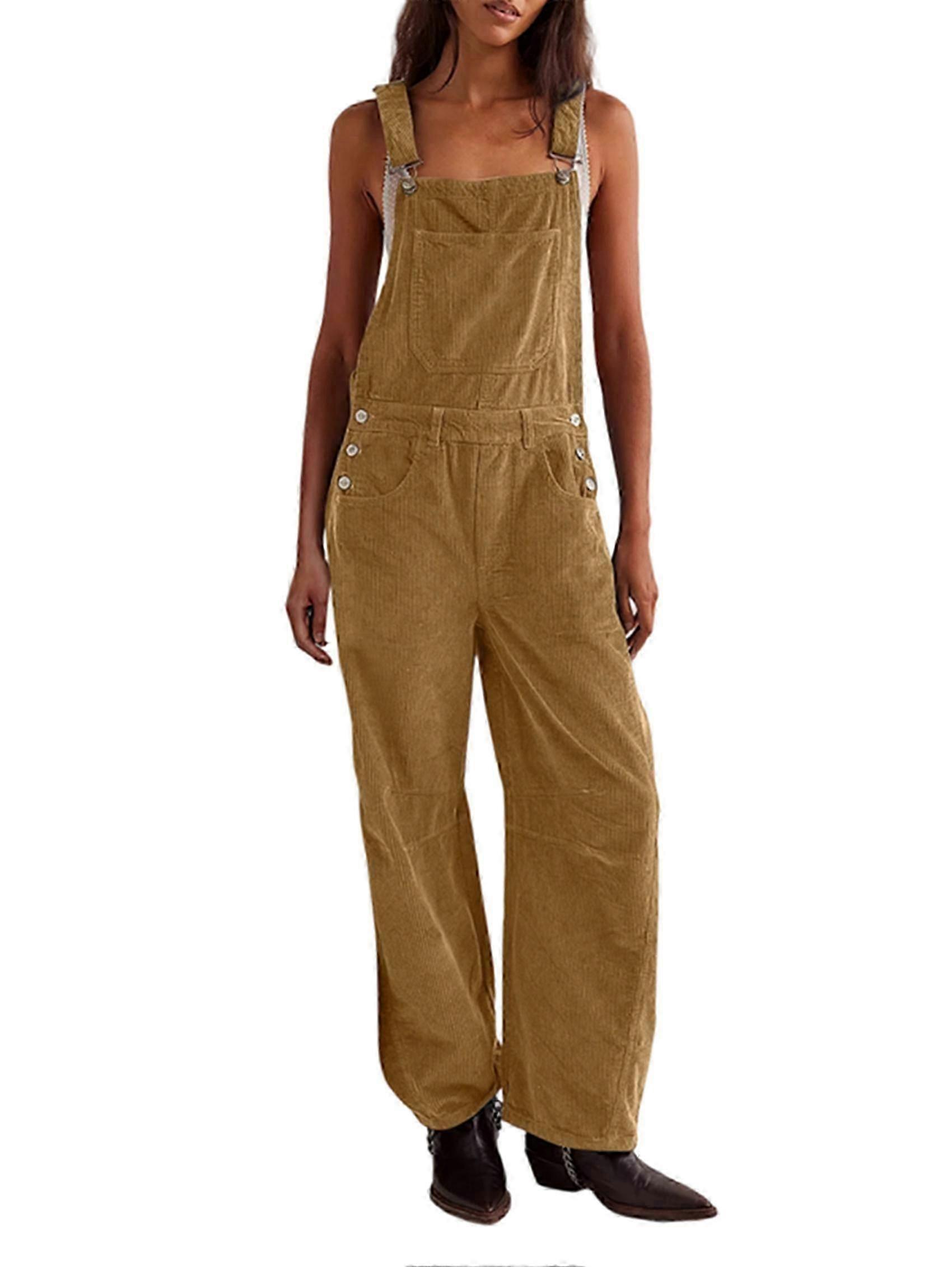 Suitable For Women'S Corduroy Overalls Wide Leg Bib Pants Adjustable Romper Jumpsuit With Pockets Pink Xl