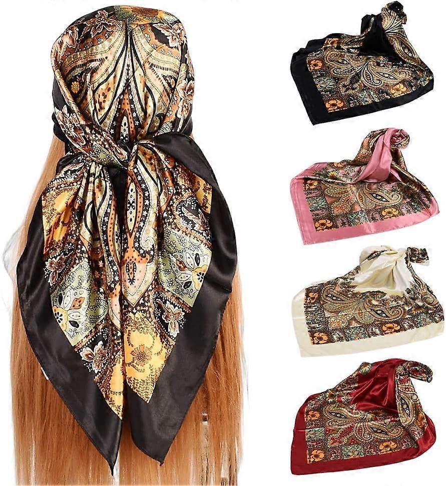 4PcsSilkHeadScarvesforWomenSatinHairScarf35”LargeSquareBandanaSilkLikeNeckScarfShawl
