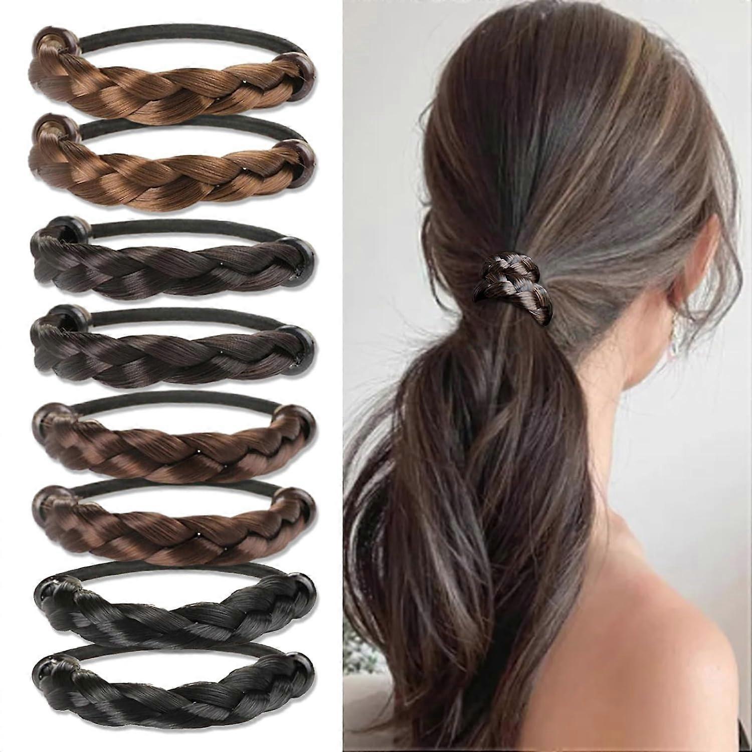 8PCSHairTiesWigBraidedHairElasticRopePonytailHoldersforWomenGirlsTeensHairAccessories(Black,naturalblack,lightbrown,darkbrown)