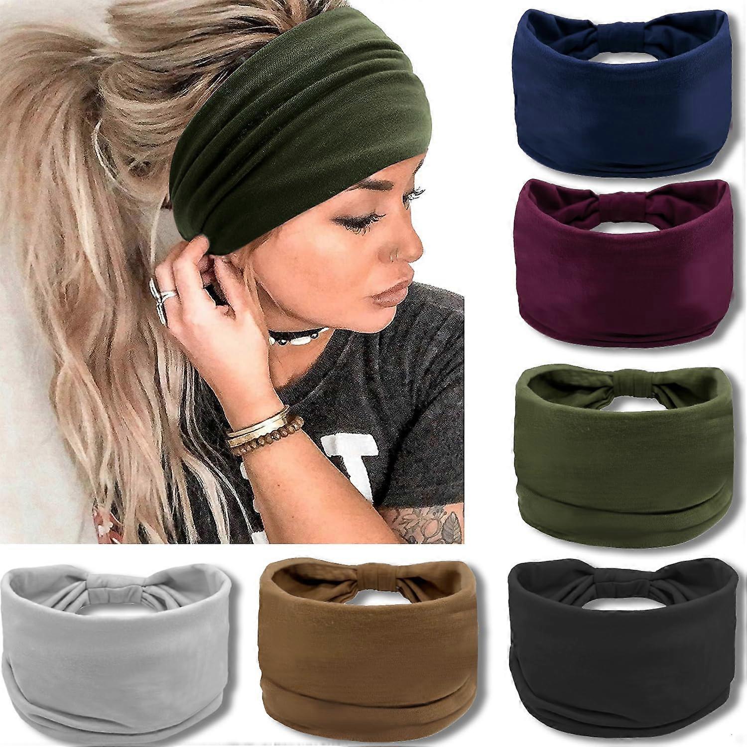 WideHeadbandsforWomen,SolidKnottedHeadWrapsTurbans,LargeAfricanStyleHeadBandsHairAccessories,6Pack