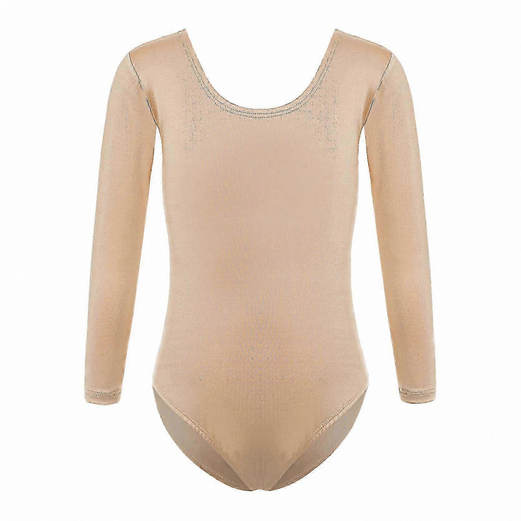 Long Sleeve Gymnastics Leotard for Girls Kids, Ballet Dancewear Competition Athletic Nude