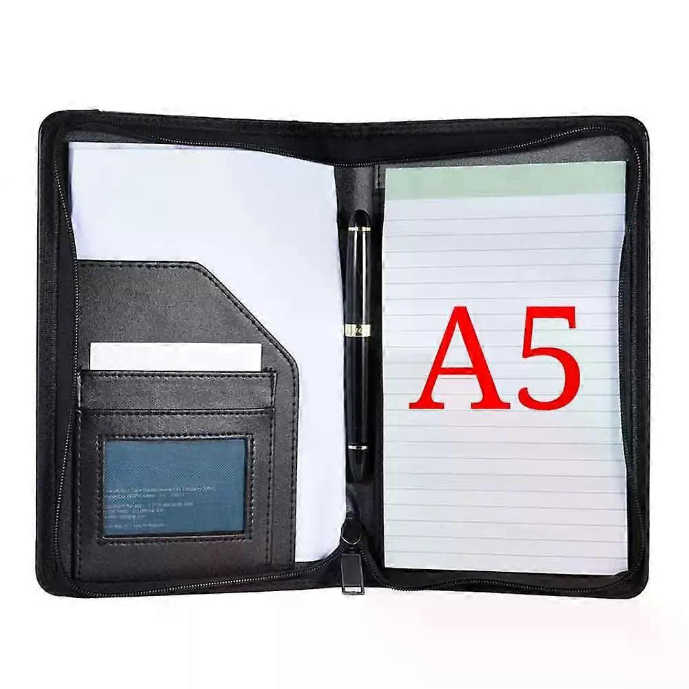 Portable Business Portfolio Padfolio Folder Document Case Organizer A5 PU Leather with Business Card Holder Memo Note Pad