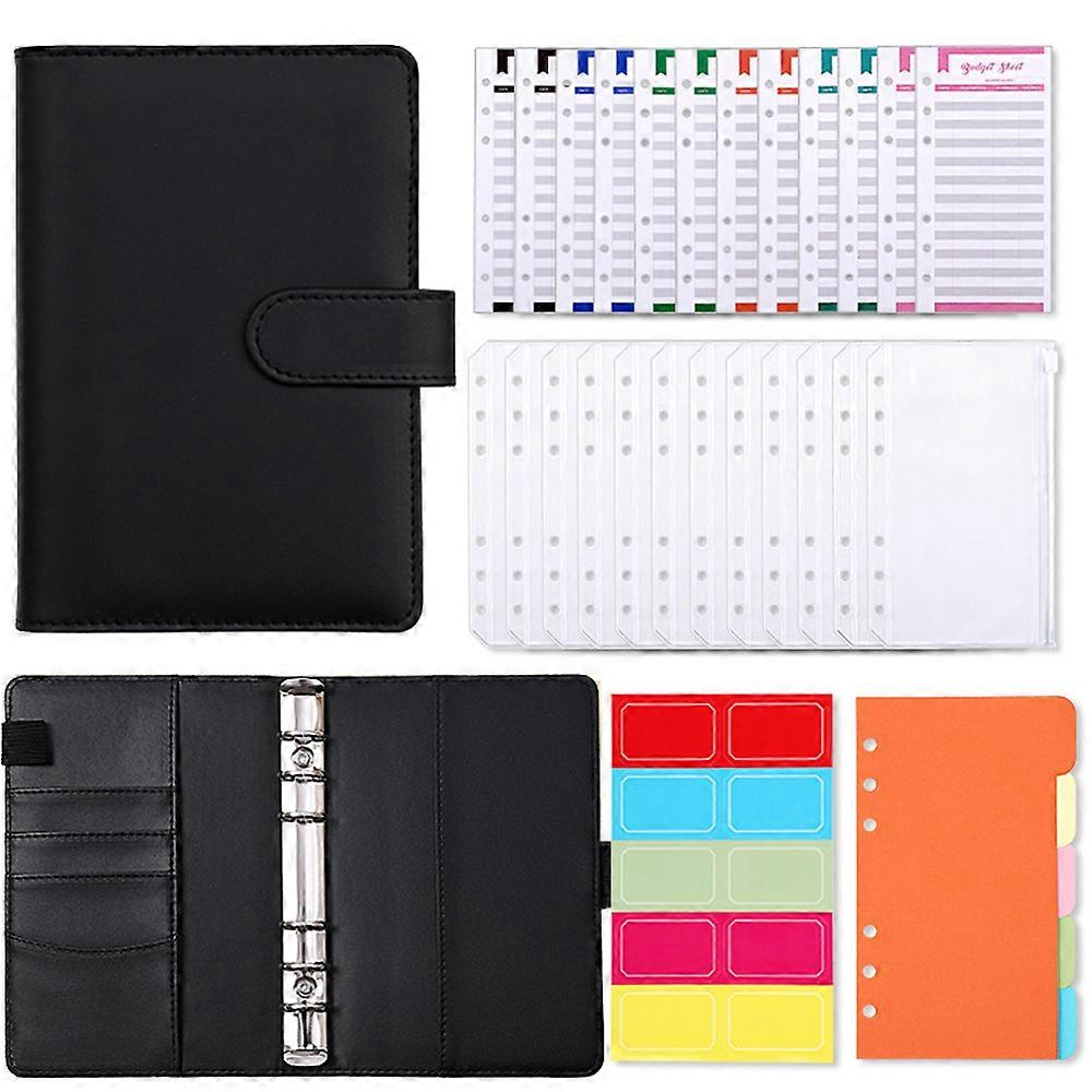 [DETAIL]<br>2023 A6 PU Leather Budget Binder Notebook Cash Envelopes System Set,with Binder Pockets for Money Budget Saving Bill Organizer<br>Standard (STD) Package contents:<br>1* PU Binder<br>12*Zipper Bag<br>12*Budget Sheet<br>1* Sticker sheet<br>5* Divider<br>Super Vaule Package contents:<br>1* PU Binder<br>8*Zipper Bag<br>12*Budget Sheet x2<br>5* Sticker sheet  (3 different ones)<br>5* Divider<br>40* A6 sheets<br>Durable material: the binder cover is made of quality PU leather surface which touches smoothly and comfortably; Double waterproof layers are tightly laced together; The magnetic buckle opens and closes easily while ensuring your privacy; The stainless steel binder has 6 round rings which you could add or remove planner sheets flexibly<br>Pretty gift: the loose leaf binder cover is handmade with quality synthetic leather material, which can be as a practical present for Christmas Day, New Year's Day, Valentine's Day or birthday; Attractive macaroon colors can make the person who received the gift very happy<br>Lightweight and proper size: the loose leaf binders are approx. 7.4 x 5.1x 1.1 inch, which can keep 100 - 120 sheets of paper; They are lightweight and in a proper size that easy for you to hold in hand or put them in your bags and backpacks<br><br>[ATTRIBUTES]<br>- High-concerned chemical: None<br>- Shape: Folder<br>- Type: Ring Binder<br>- High-concerned chemical: None<br>- Shape: Folder<br>- Type: Ring Binder<br>- Material: PU<br>- Size: 18x13cm (7.4x5.1Inch)<br>- Model Number: A6 Notebook Binder<br>- Origin: Mainland China<br>- Feature: Budget Planner Binder<br>- Feature 1: Cash Envelope Binder<br>- Feature 2: Schedule Reminder Binder<br>- Feature 3: Money Saving Organizer<br>- Feature 4: PU Leather Notebook Binder<br>- Feature 5: A6 Notebook Agenda Reminder Binder