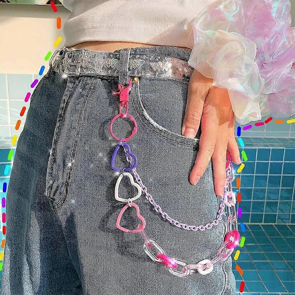 Fashion Punk Rock Pendant Pant Chain Rainbow Resin HipHop Waist Key Chain Harajuku Jeans Pants Jewelry Accessories for Men Women