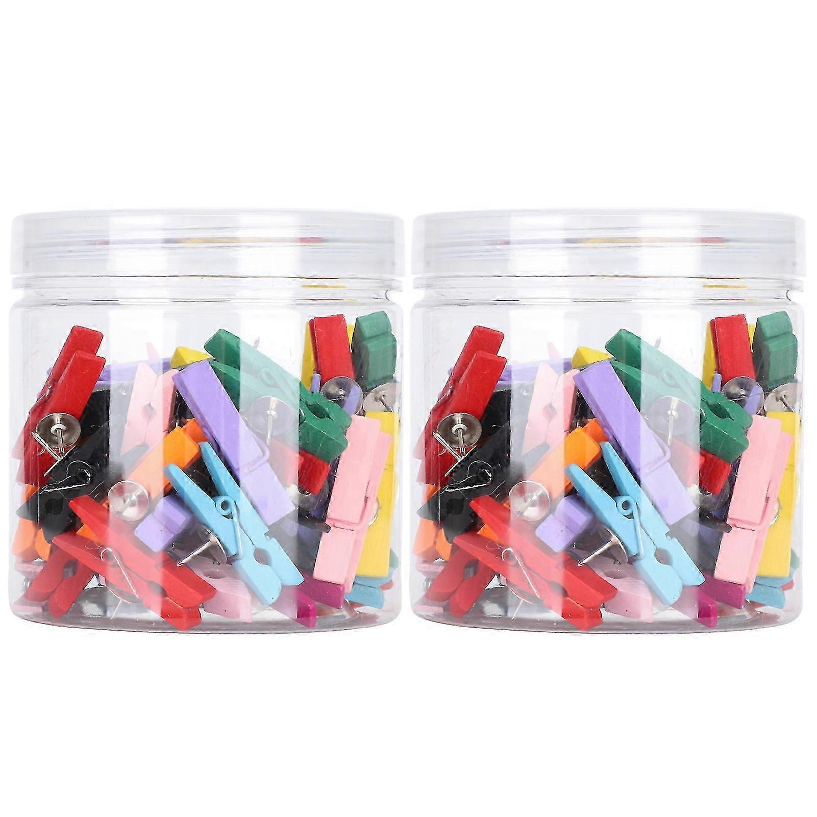 100pcs mini colorful push pin picture clips, wooden craft photo clips set.