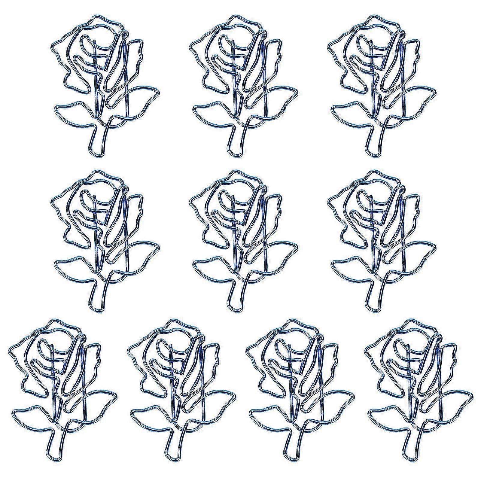10PCS Iron Blue Rose Shaped Paper Clips, Label Bookmark for Notebooks