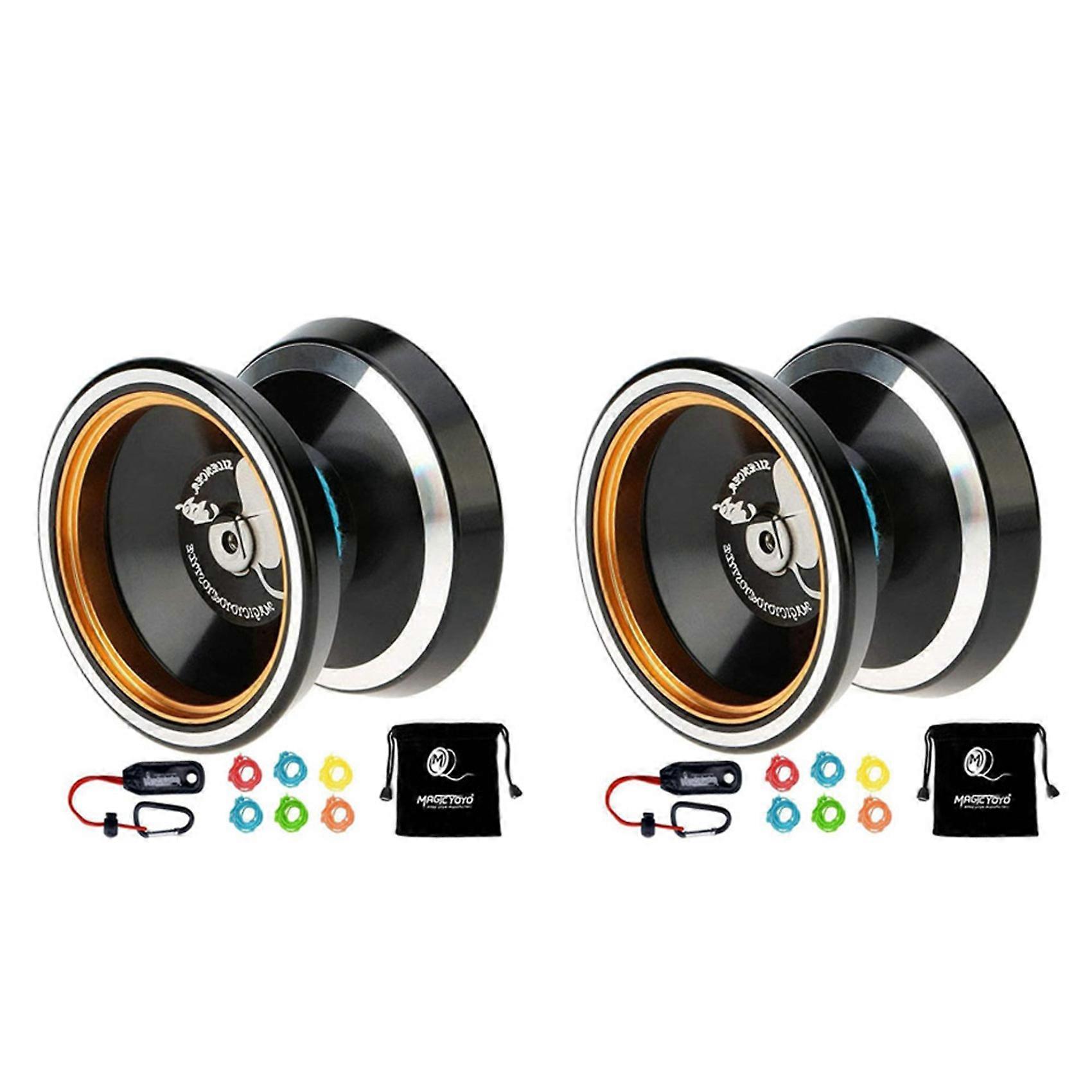 2X MAGICYOYO Non-Responsive Yoyo M001-B,Alloy Aluminum Yoyo with Metal Ring Intermediate Yoyo+Extra 10 String+Bag