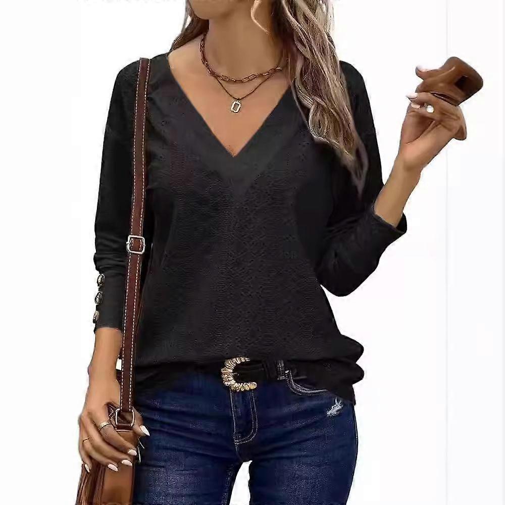 Autumn Women's Fashion: Hollow V-Neck Long-Sleeved Buttoned T-Shirt With Shoulder-Loose Design